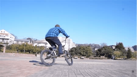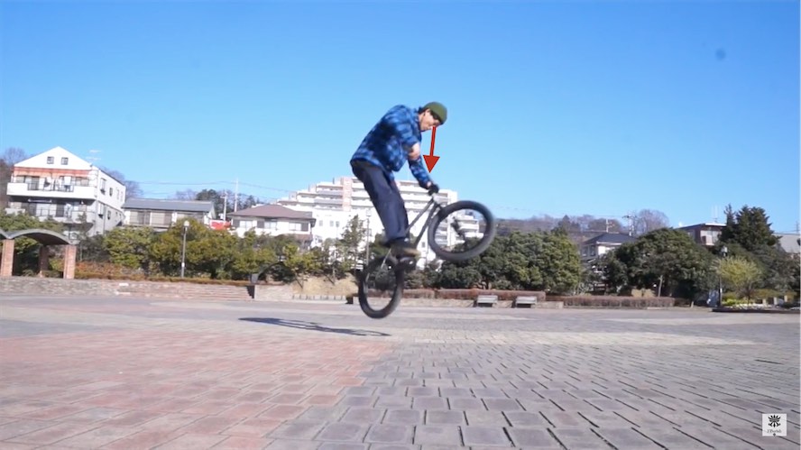 空中で180の回転を足そうとするとバイクに対して腰を先行させてしまい