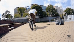 前輪を浮かしている状態で後ろ向きに進むトリックです。