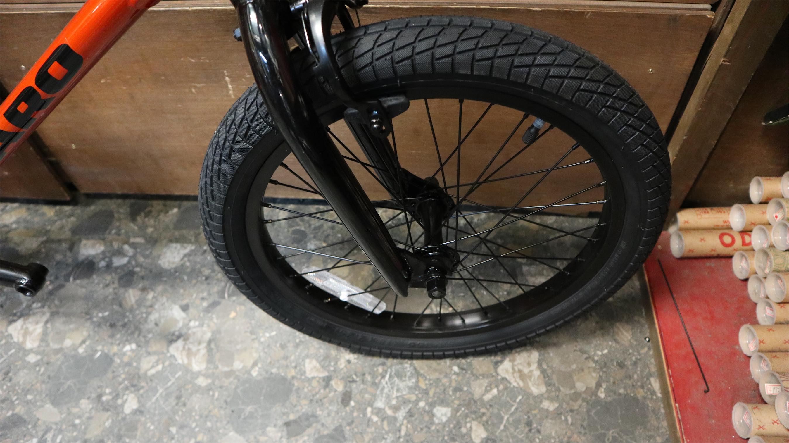 大人用のBMXと同じ36本スポークホイール、インテグラルヘッド、3ピースクランク、