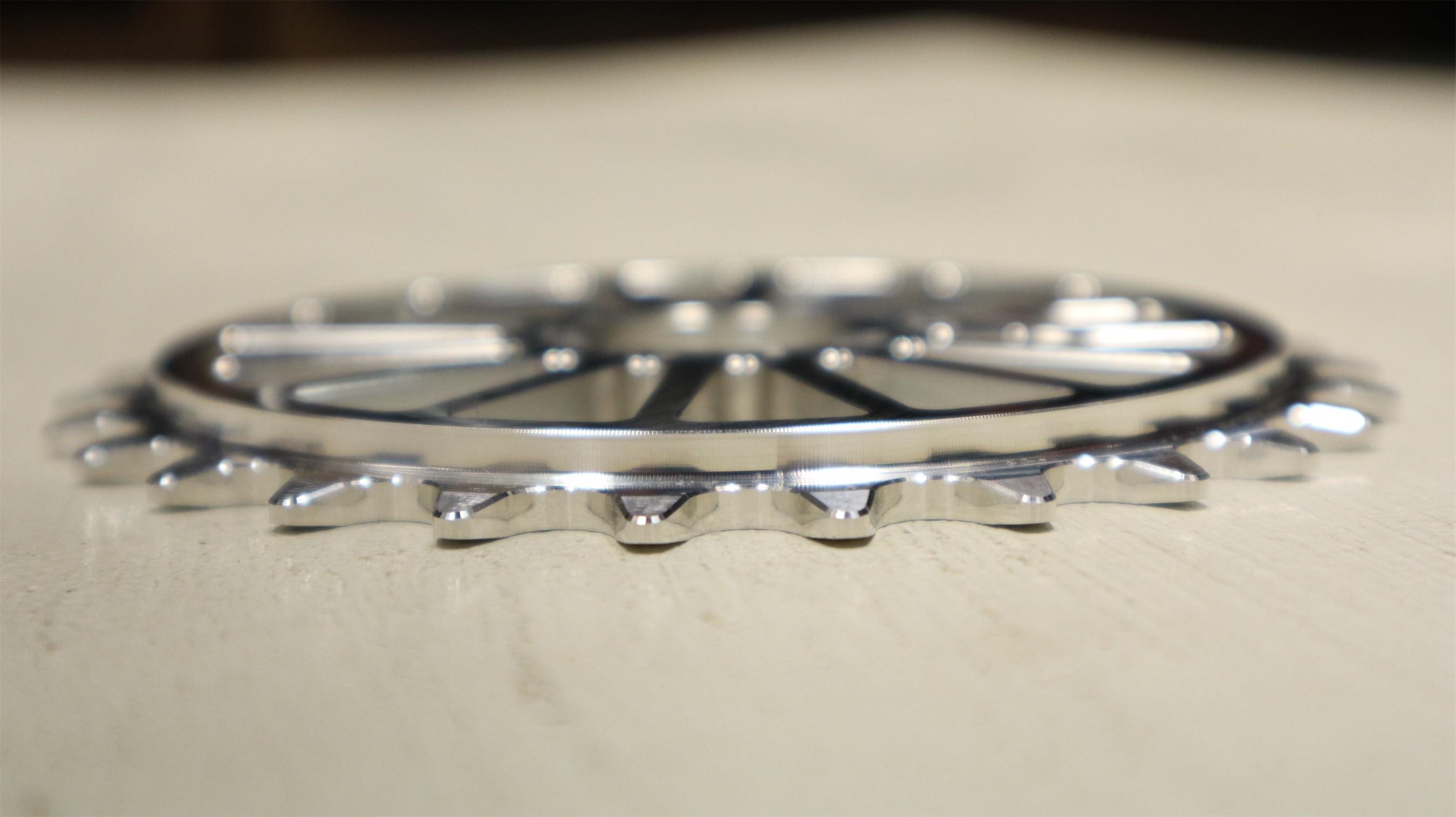 車のホイールをモチーフに格好良さと軽さを兼ね備えたスプロケットになります。
