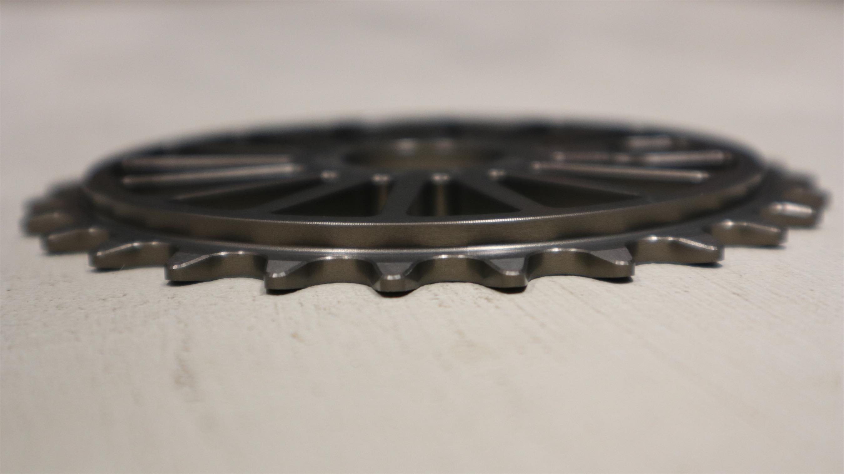 車のホイールをモチーフに格好良さと軽さを兼ね備えたスプロケットになります。