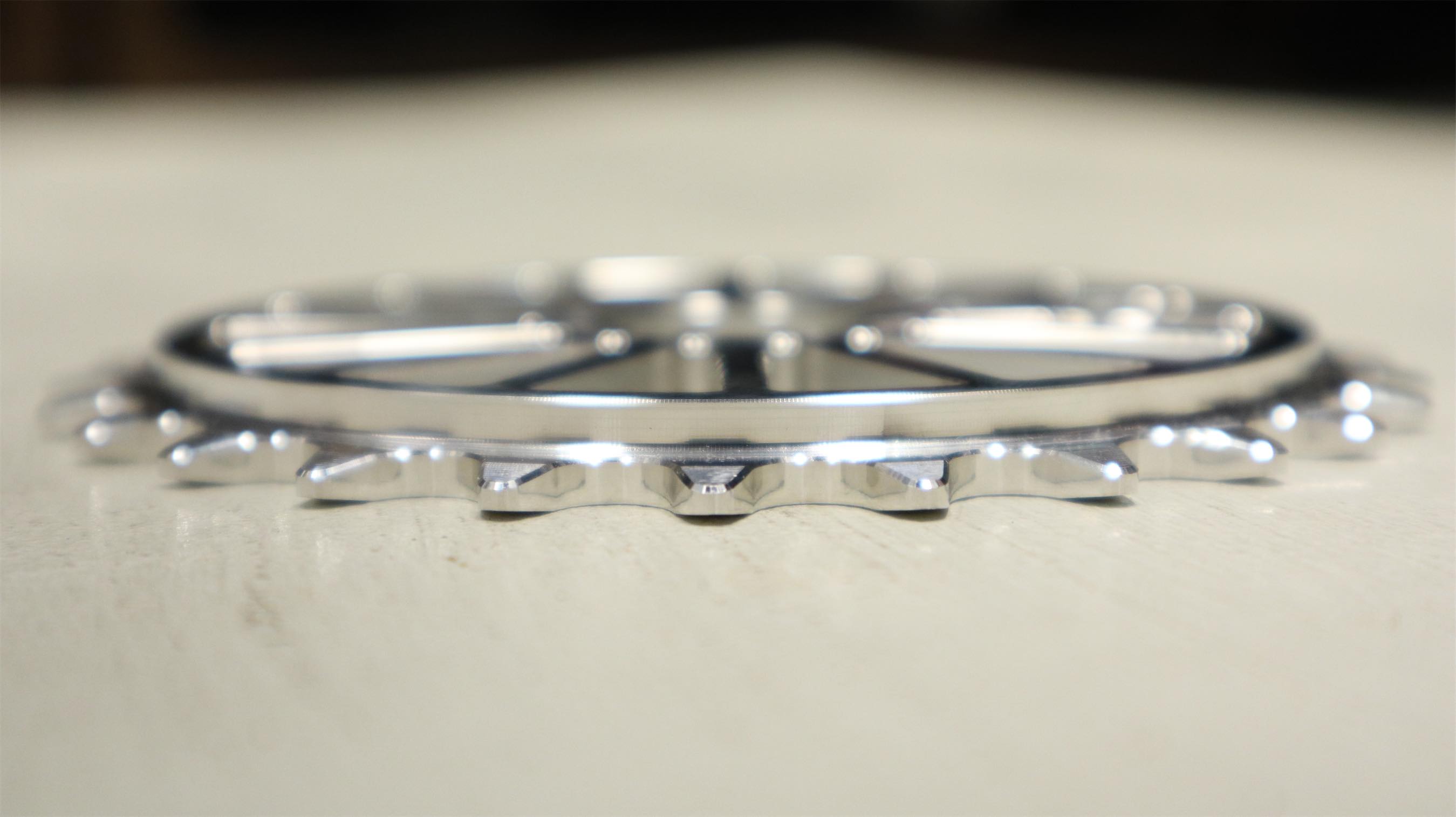 車のホイールをモチーフに格好良さと軽さを兼ね備えたスプロケットになります。